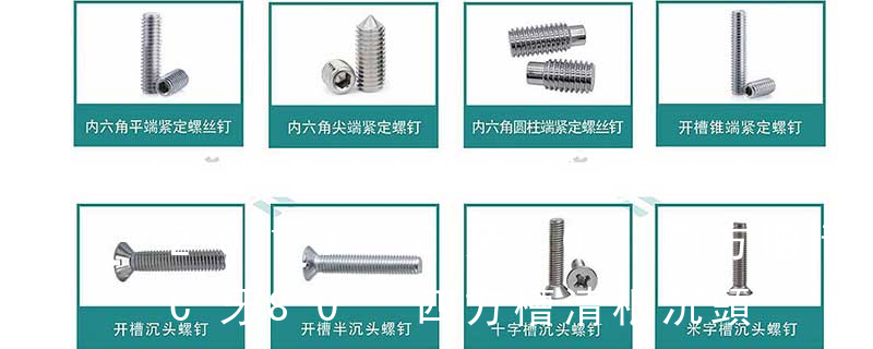 1、Flat:平頭 (鎖入后,頂部與工作件齊平)2、Oval:色拉頭、O頭、半沉頭 3、Round:圓頭 4、Pan:圓扁頭 5、Truss:大圓扁頭 6、Hex:六角頭 A-5:Finish Code/外觀處理。公制自攻螺絲 :于品名后方直接標示 Tapp 主要分類包括普通螺絲、機螺絲、自攻螺絲和膨脹螺絲三種。 有頭螺釘Cap screw 過去限于全牙的扣件。 六角頭螺釘Hex cap screw與大六角螺栓Hex bolt 顧名思義為頭部為六角型的外螺紋扣件,設計為使用扳手轉動。依照ASME B18.2.1標準,六