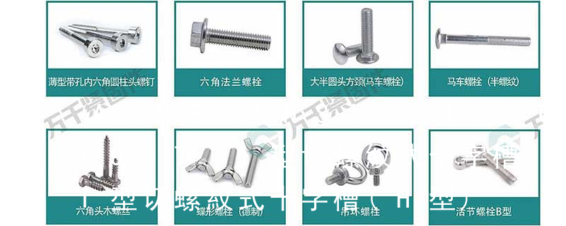 ① 螺釘直徑 ② 螺釘長(zhǎng)度 ③ 螺釘頭型 B:球面圓柱頭; C:圓柱頭; F(K):沉頭; H:六角頭;HW:六角頭帶墊圈; O:半沉頭; P:平元頭; R:半元頭;PW:平元頭帶墊圈; T:大扁頭; V:蘑菇頭;④ 1)開槽普通螺釘多用于較小零件的連接。它有盤頭螺釘、圓柱頭螺釘、半沉頭螺釘和沉頭螺釘。盤頭螺釘和圓柱頭螺釘?shù)尼旑^強(qiáng)度較高,瑁在普通的部件連接上;半沉頭螺釘?shù)念^部呈弧形,安裝后它的頂端略外露,且美觀光滑,一般用
